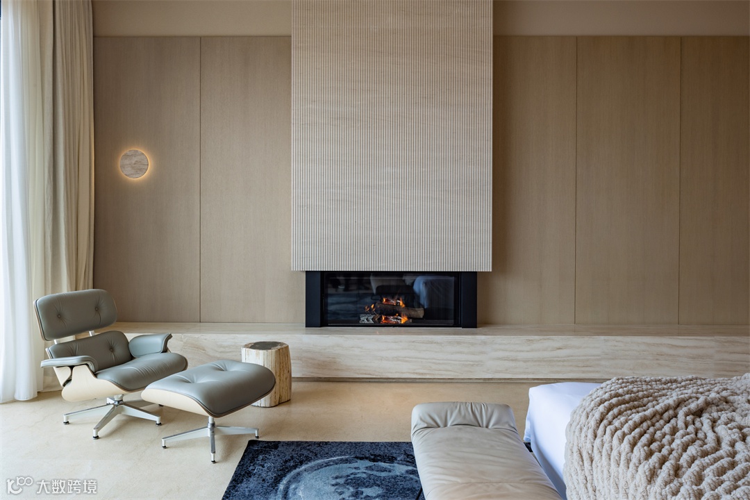 以米色、奶油色为基调的法国白洞石、北美橡木等天然材质,运用于每一个房间之中,流畅的线条贯穿始终,而柔和温暖的隐藏式照明系统,凸显归家的安心舒适氛围。精心挑选、造型极富戏剧性和雕塑感的当代名家设计家具运用于空间之中,Wassily扶手椅、Herman Miller出品的Eames躺椅、定制自Freifrau的Leya床尾凳等,达成艺术感与自然的融合呼应。