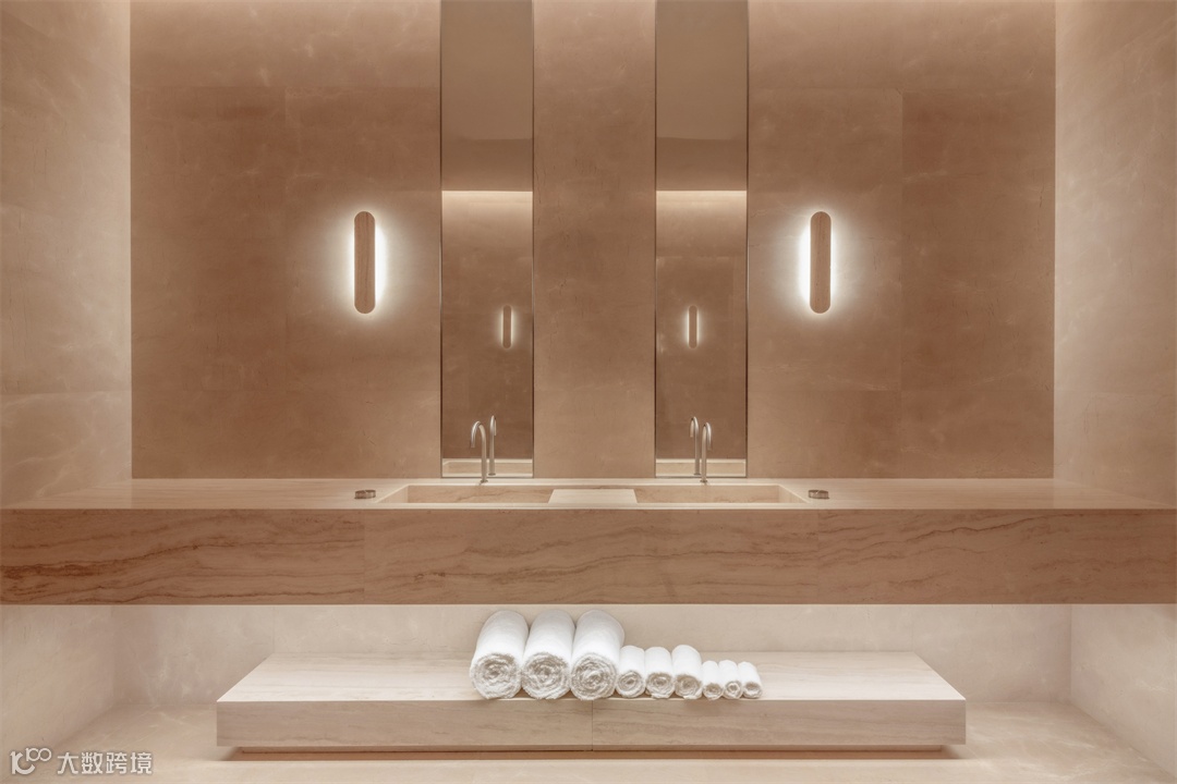 绵延十数米的石质长径,随沿线园林层次的递进、景致和材质的变幻,形成一场过滤喧嚣、纷扰和疲惫,为身心洗尘。伴随着酒店铜制大门的推开,室内的序曲缓步登场。