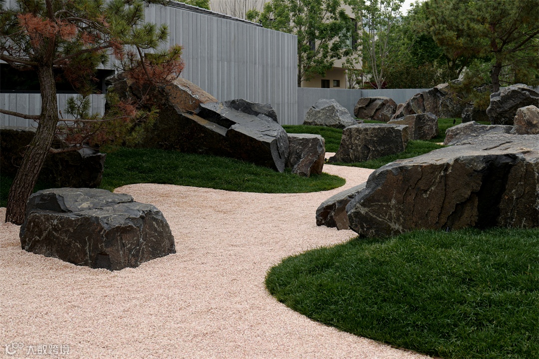 ● 由苏州知名设计师厐喜主笔的园林设计,整体以枯山水园林理念为主体,运用自然材质,探寻人与自然的和谐共处。