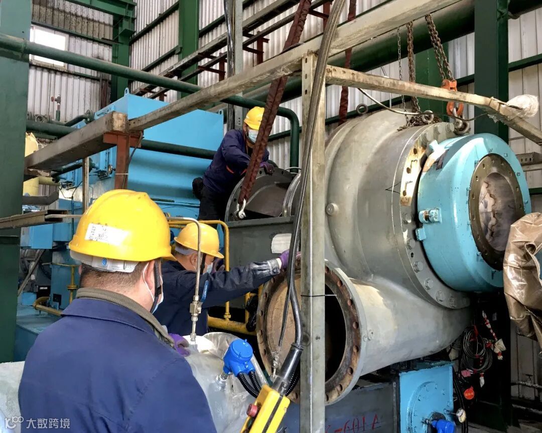 5月2日11:00,乙烯厂环氧乙烷/乙二醇车间公司级大机组K601空气压缩机进入一级压缩机回装、调试阶段。K601担负着为整个空分装置输送原料气的任务。目前,一级压缩机的星型变速箱、太阳轮转子、蜗壳等部件也完成了地面组装成功被吊上基座,进入轴系调试、找正阶段。【高红】