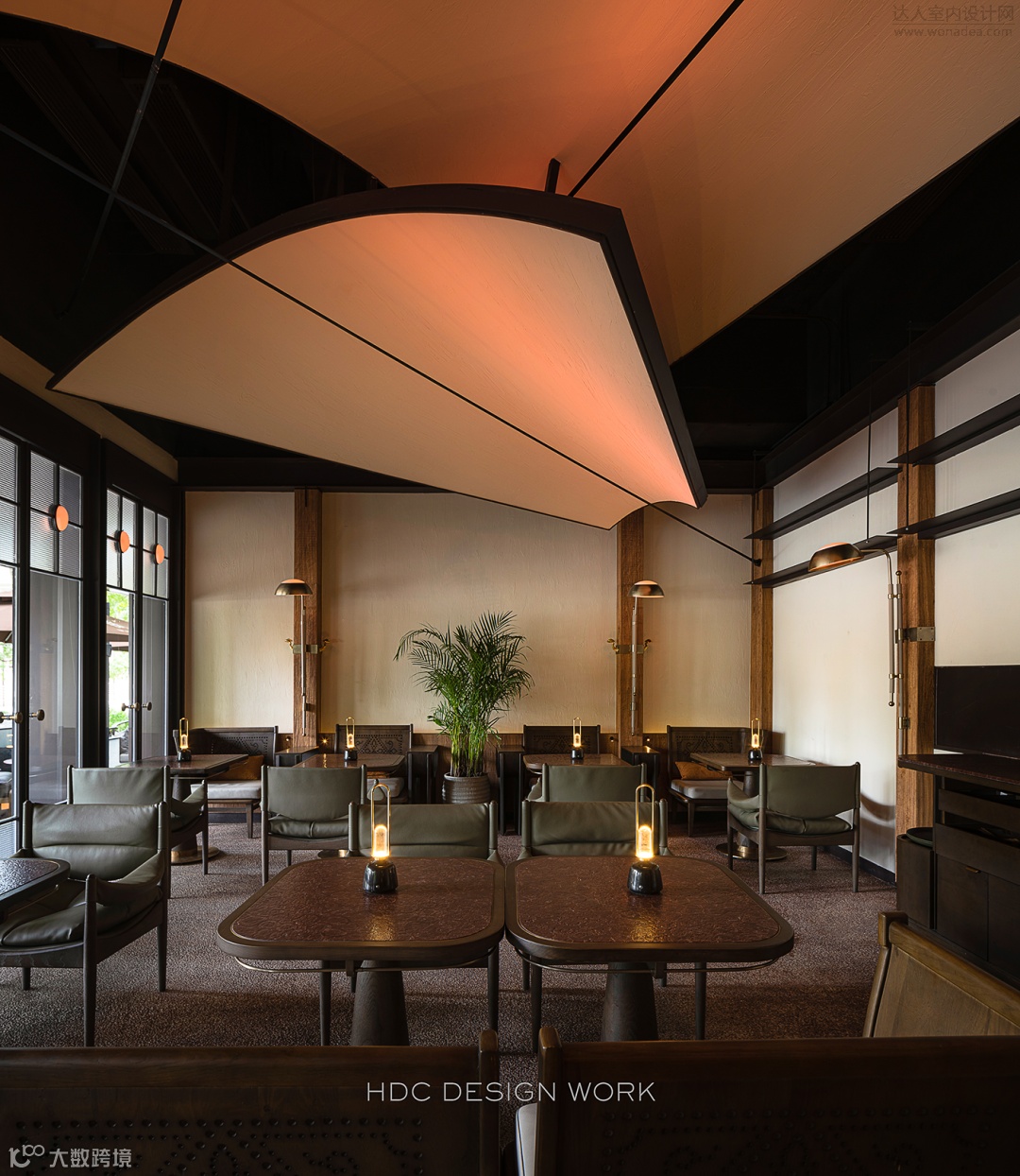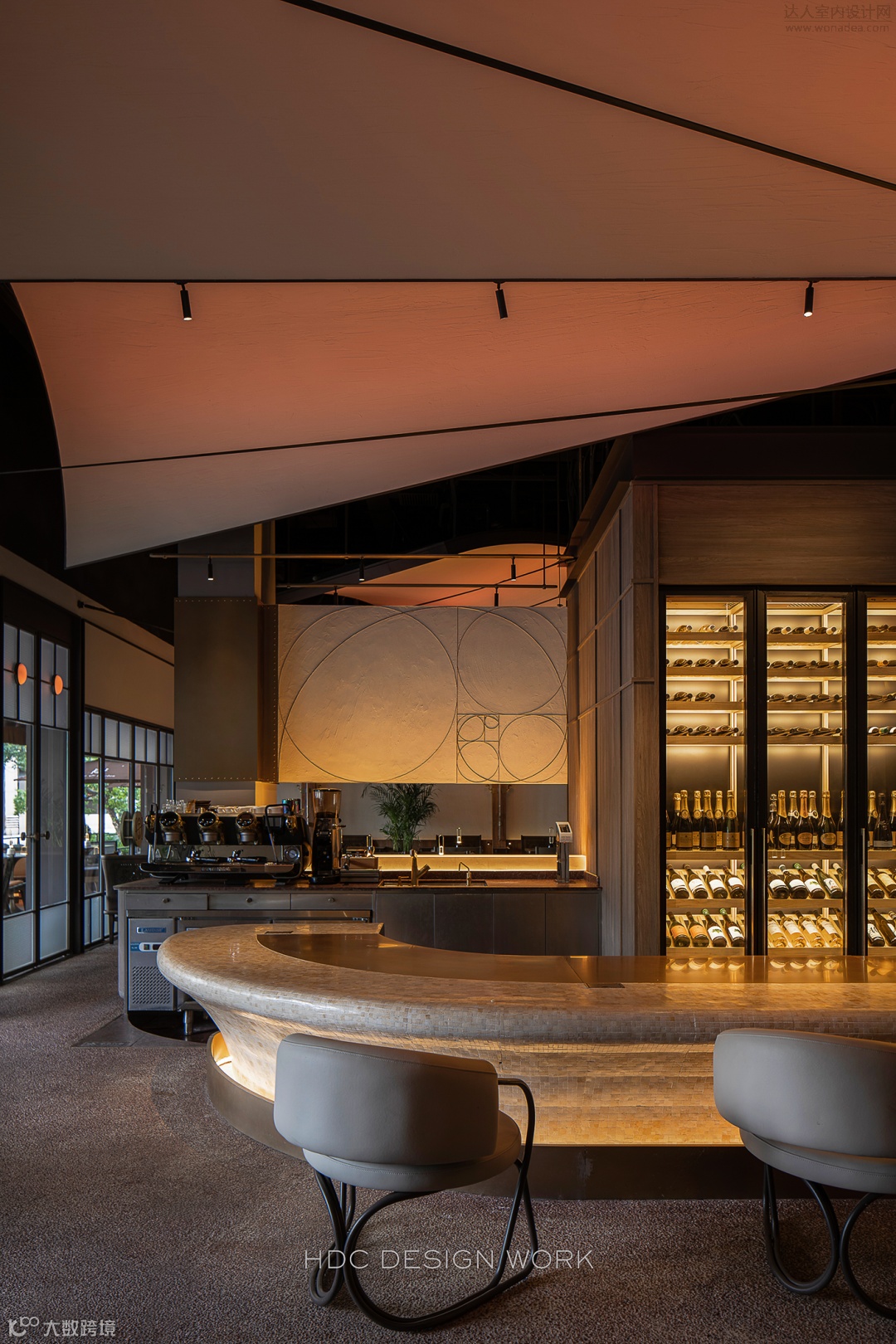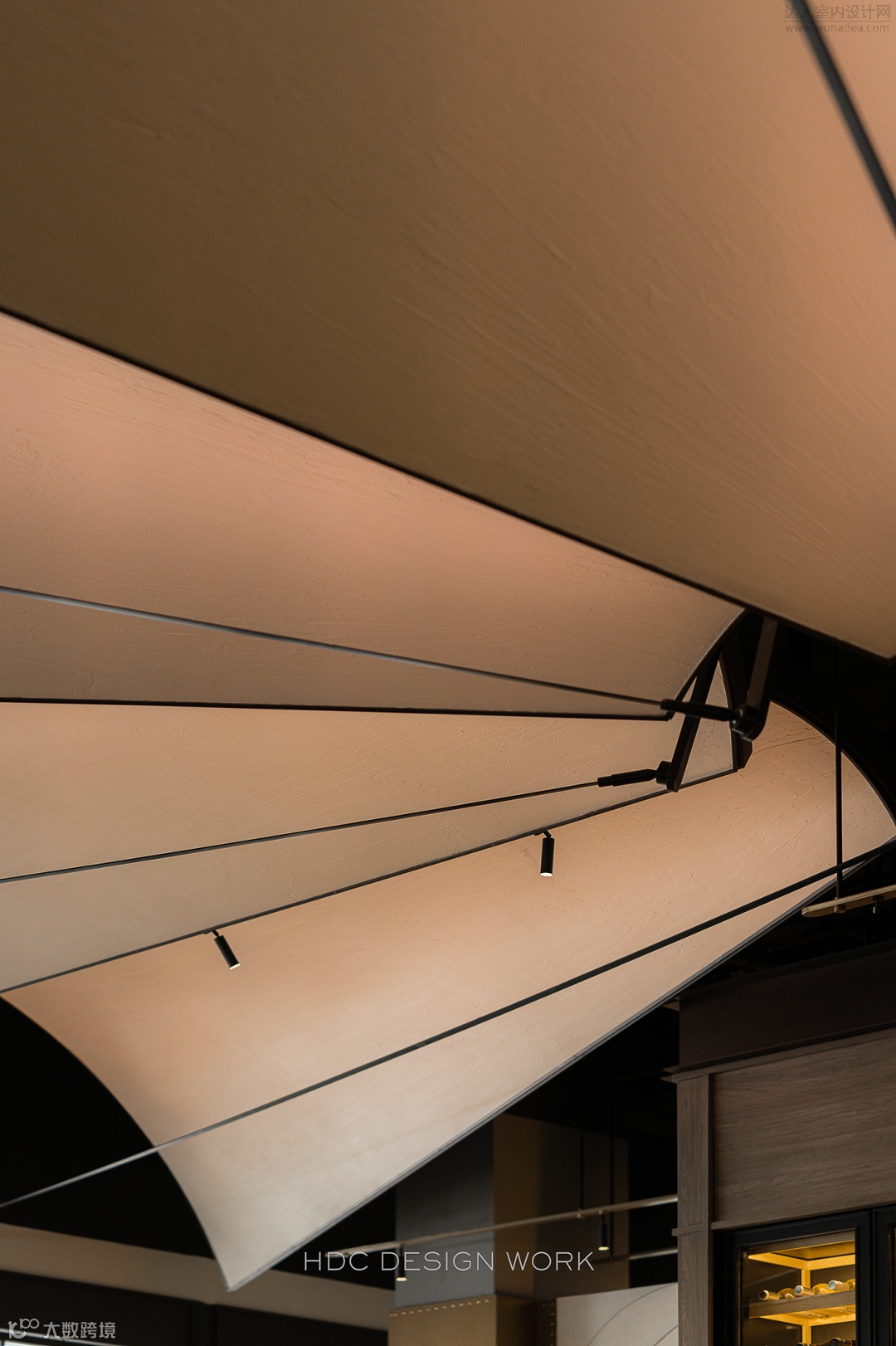 在将空间以开放式策略布局后,有意增加了更多光线的进入,天空中几扇巨幅的弧型造形,更是用以折射不同方向的光线,让整个室内光线自然又丰富。