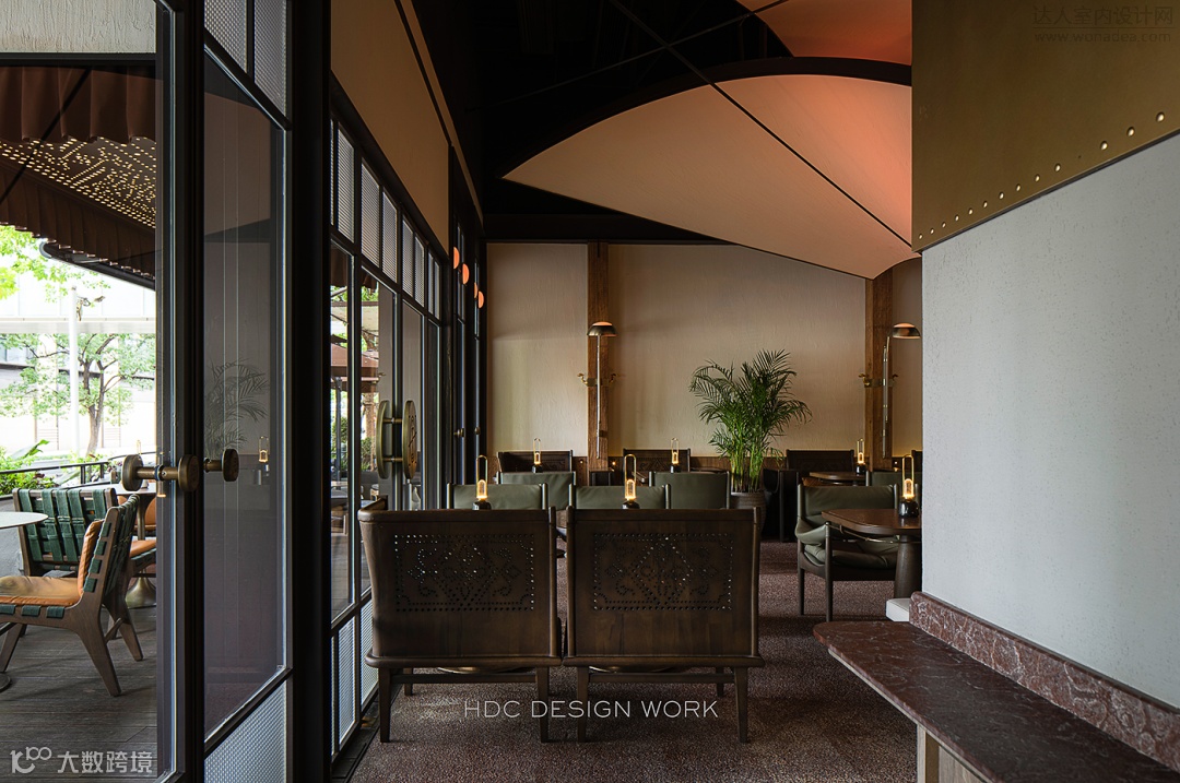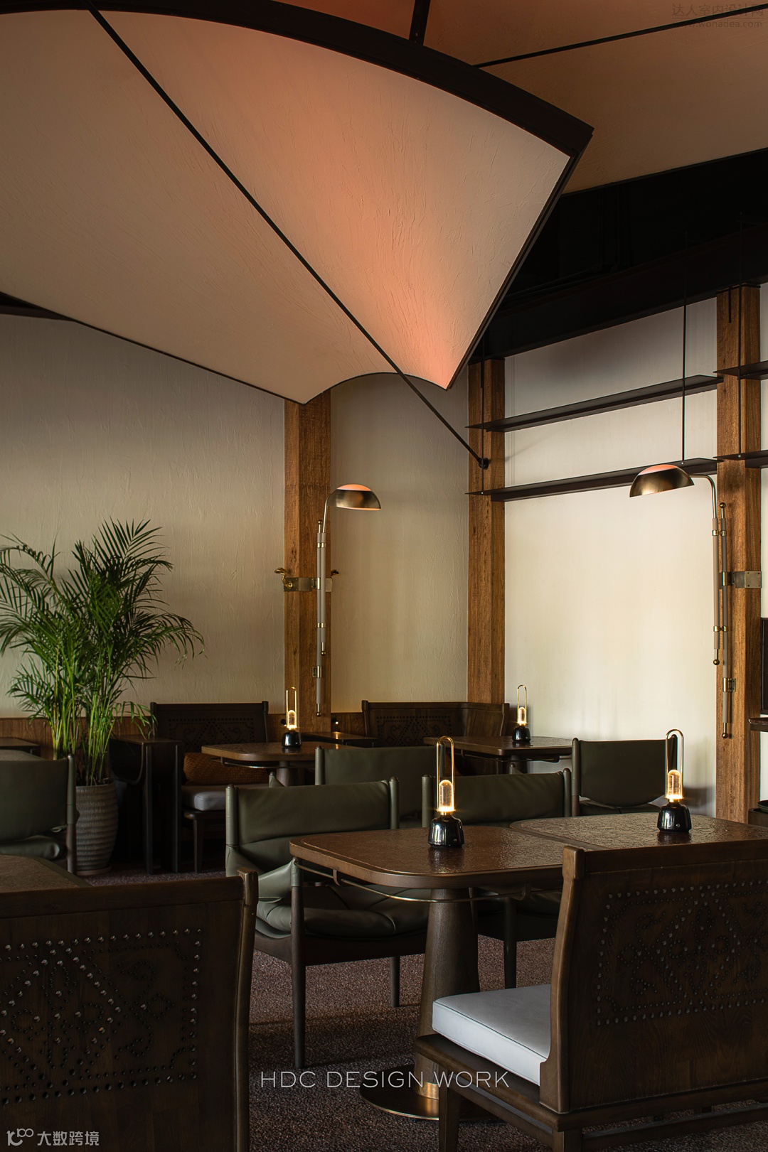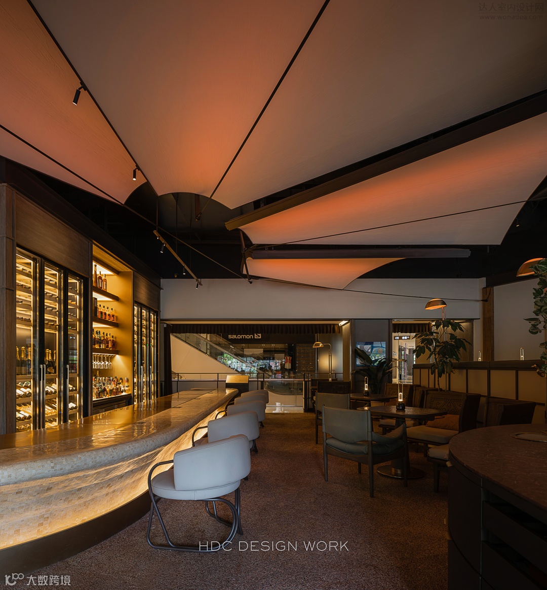 在将空间以开放式策略布局后,有意增加了更多光线的进入,天空中几扇巨幅的弧型造形,更是用以折射不同方向的光线,让整个室内光线自然又丰富。