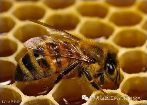 一只常见的欧洲蜜蜂正在采蜜。使用佳能MPE-65mm微距镜头获得与真正蜜蜂一样大小的画面。
