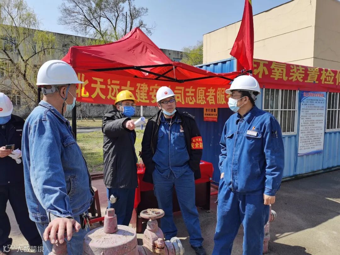 4月18日9时50分,北天集团机关干部大检修服务队人员在乙烯厂检修现场进行业务指导。此次检修,北天集团组建党员突击队13个、党员安全监督队1个、党员宣传队1个。集团机关大检修服务队队员每天深入到现场监督、指导工作,为参检职工提供送水,送餐服务。【王慧东】