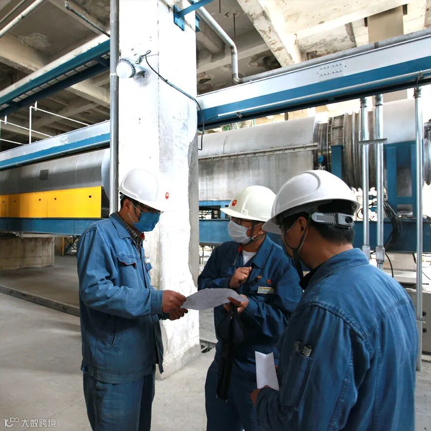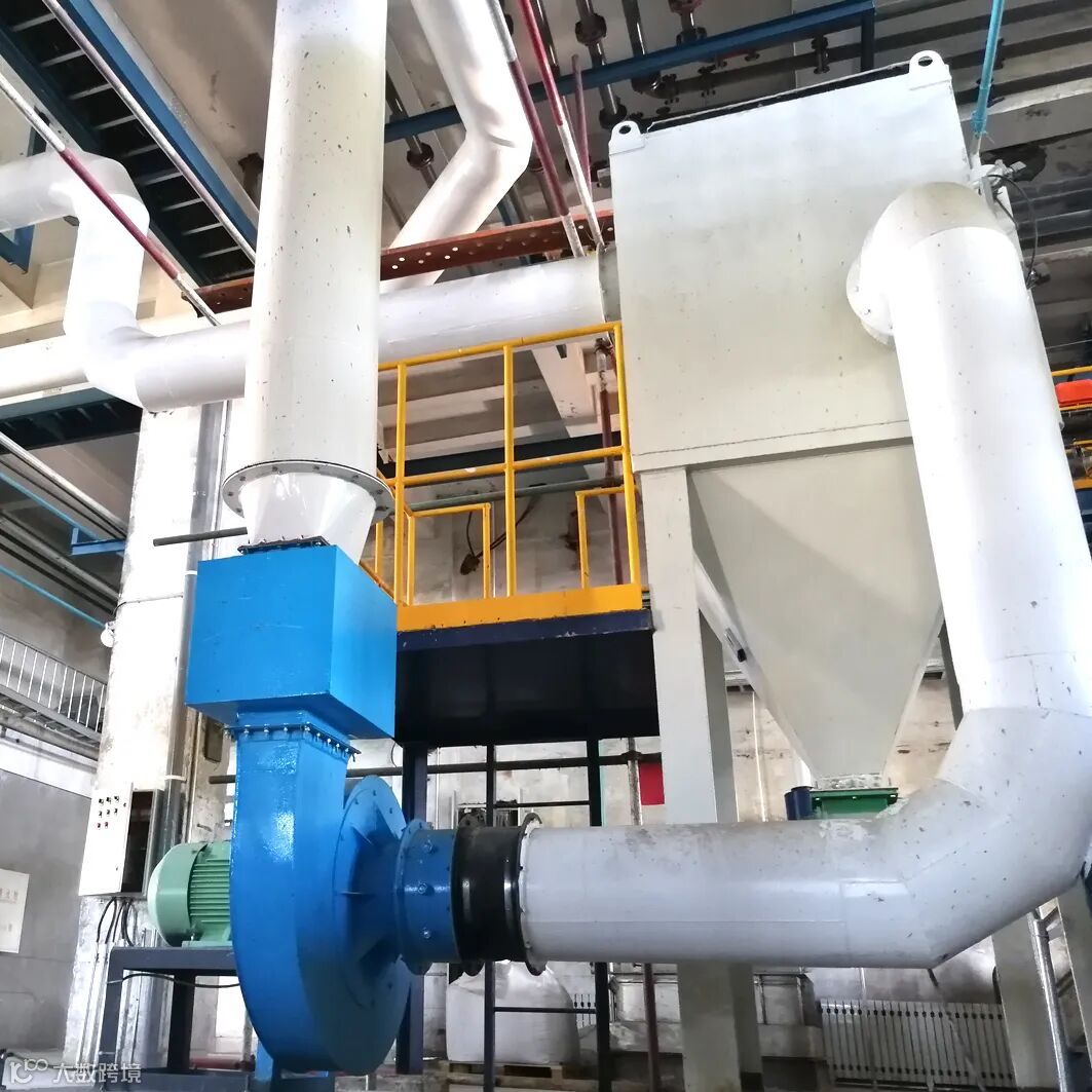 你会看到载体焙烧单元的各个易产生粉尘的进出料口都安装了集尘罩,所有粉尘都被引入回收系统而不会外溢到作业环境中。