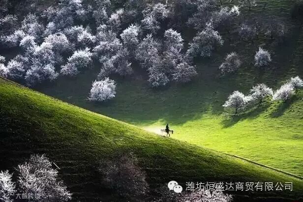 这一片中世纪遗留最大的原始野杏林,绵延十几公里散布在巩乃斯河北岸,“巩乃新”是哈萨克语,意思是太阳升起的地方,每年四月当太阳升起照耀这片野杏林,这里瞬间进去一个美丽浪漫的季节,果花,草花次第盛开,美不胜收,粉红的,雪白的杏花把一个个山头妆扮起来,牛羊似珍珠洒落在花林间、草坡上,一派北疆田园风光......