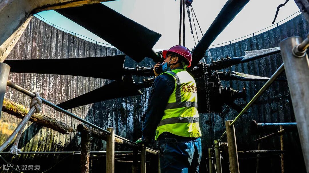随着吊车轰鸣与阵阵哨响,腈纶厂凉水塔四号风机连同桨叶一起落地。由于连续运转多年,风机桨叶已经腐蚀严重,亟待更换。接到任务的四公司立即调集三个专业的十余名精兵强将投入施工。凉水塔内部污水的气味异常刺鼻,闻起来让人不断作呕。长期在潮湿环境下的风机固定螺栓已经完全锈死,大家只能用手锤和撬棍一点点艰难拆卸。吊装过程中,桨叶与凉水塔壁间隙小,且在凉水塔内部施工,指挥人员与吊车司机无法用旗语沟通,只能靠对讲机联系,增加了吊装难度。在施工人员共同努力下,风机成功更换新桨叶,设备重新投入使用。