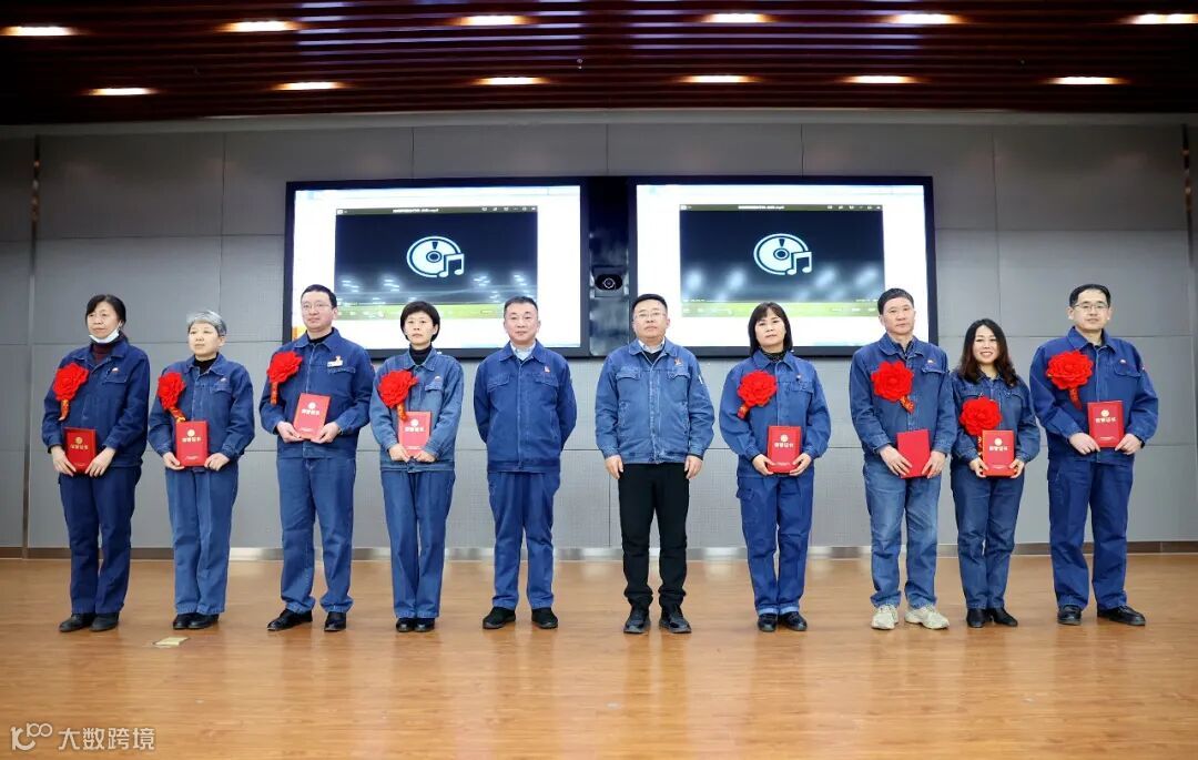 公司领导与先进科组代表合影