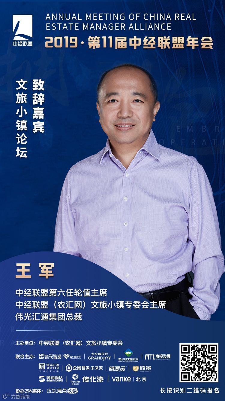 本次文旅小镇论坛拟邀中经联盟第6任轮值主席、中经联盟(农汇网)文旅小镇专委会主席、伟光汇通集团总裁王军为论坛致辞。