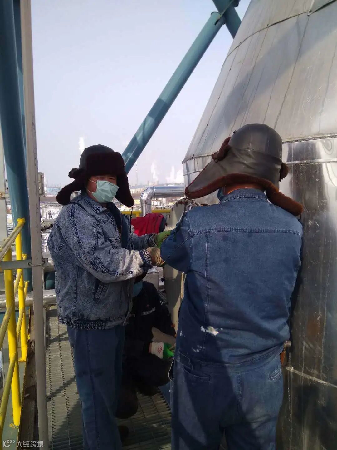 2月21日,雨夹雪。腈纶厂丙烯腈装置余热炉单元脱硫塔顶层不时传出蒸汽的呲呲声。工建四公司检修车间维护人员赶到现场仔细查找后,发现声音来自脱硫塔内部,初步判断有蒸汽管线泄漏,如果不及时处理,不仅会对塔内部防腐涂层造成破坏,还会造成蒸汽不稳定,引起生产波动。