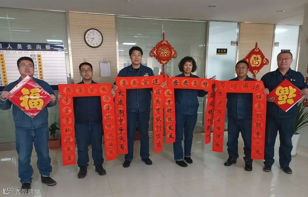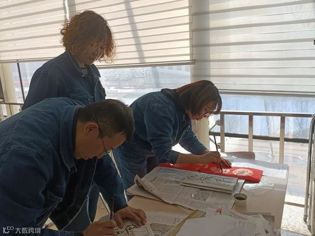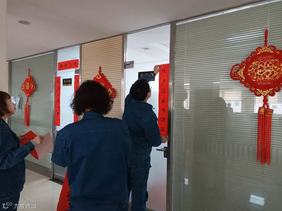 车间党员热情高涨,积极参与到写春联、贴春联、挂福字的活动中,把车间办公区域装点得喜气洋洋、热闹非凡。