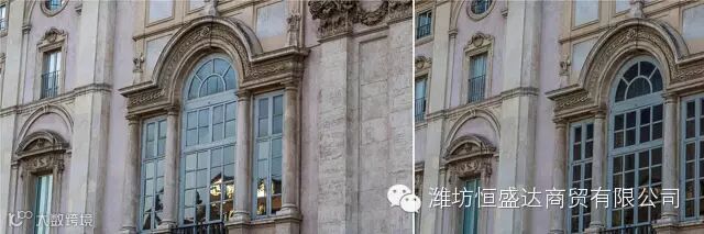 除了增加照片饱和度,让蔚蓝的天空更耀眼外,对于会反光的物体表面也有明显的影响,转动CPL能消除窗户反光。