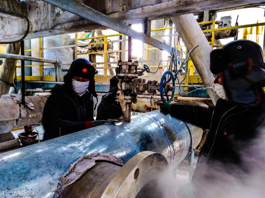 每天一早分派完任务,近40人的施工队伍就分组开始一天的工作。零下20几度的气温对室外施工来说,绝对是一个巨大的考验。戴着手套的手不一会就冻得打不了弯,他们干一会就把手伸进棉衣里取取暖,有时还要爬上管廊骑在冰凉的管线上面进行作业。焦化装置是此次保温施工工程量最大的,管线保温基本都在二层平台以上的高空进行作业,最大管线直径近1米,保温厚度60毫米,一包一包、一卷一卷的铁皮、保温棉,全靠人力手拉肩扛运至作业面。