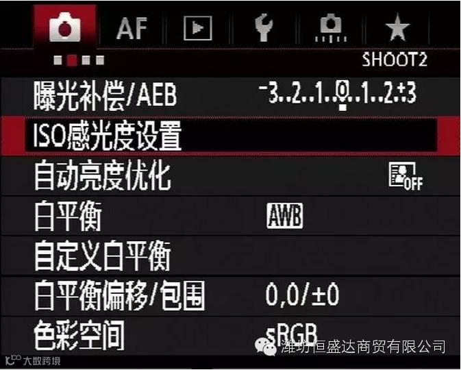 1. 在拍摄选单中选择 ISO 感光度设定。