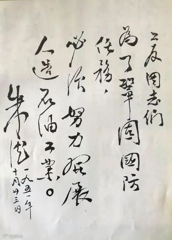 1951年10月23日,中华人民共和国中央人民政府副主席朱德到石油一厂视察并题词