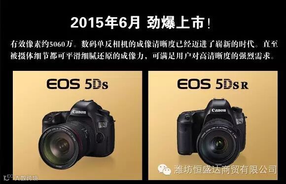 佳能最新5D系列旗舰级单反—5Ds即将发售,现首发促销中。最高返现1500,绝对超值~!新海星佳能金牌店将在潍坊地区首发此款单反相机,欢迎预约抢购。