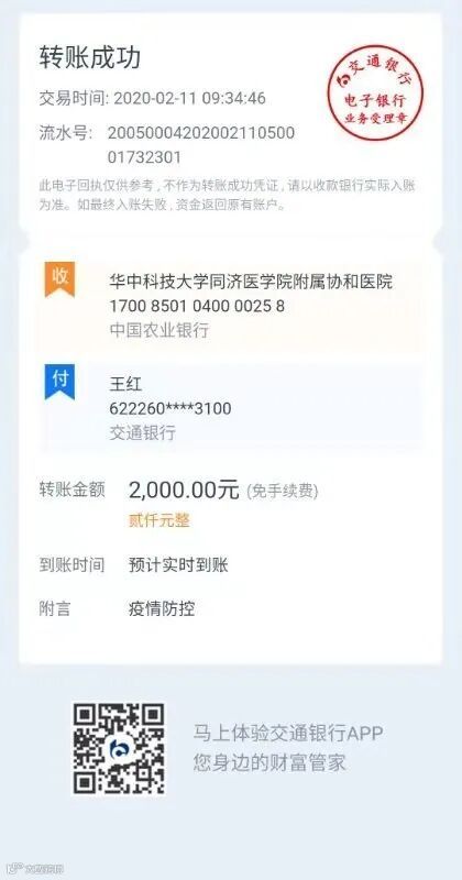 在看到医护朋友圈的伙伴在组织购买防护衣、面罩等医用物资捐往武汉时,王红又捐款1000元参与伙伴们的爱心行动。
