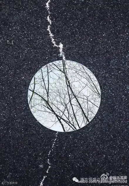 当艺术家把一片普通的圆形小镜放到地上,然后便出现了一个新的世界。创意往往在不经意的一瞬间就发掘出来了,你们也去试试!