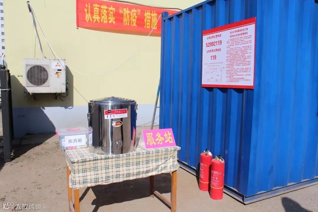 因为处在疫情期,参与档案馆改造工程的职工都通过了严格的疫情防控检查,包括本人和家属接触疫区情况排查等措施。在工地,还设立了服务站,提供糖茶水、急救箱等后勤保障。