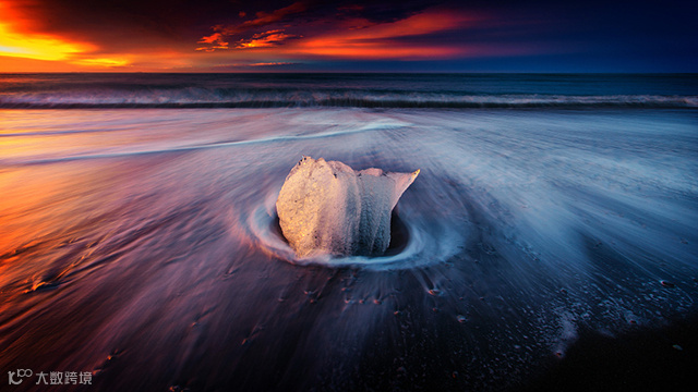 所以很多摄影师都会都会在构图基础上对拍摄主体运用互补色概念。比如,明亮的橙色和红色的日落,渐渐融入深青色的天空中,就是非常出色的搭配。类似时尚摄影中的品色对碰概念,通常也是使用互补色搭配来突出主体。利用补色间的对比让主体渐渐融入背景元素,有助于刻画主体并使观众注意到你想让他们注意的地方。