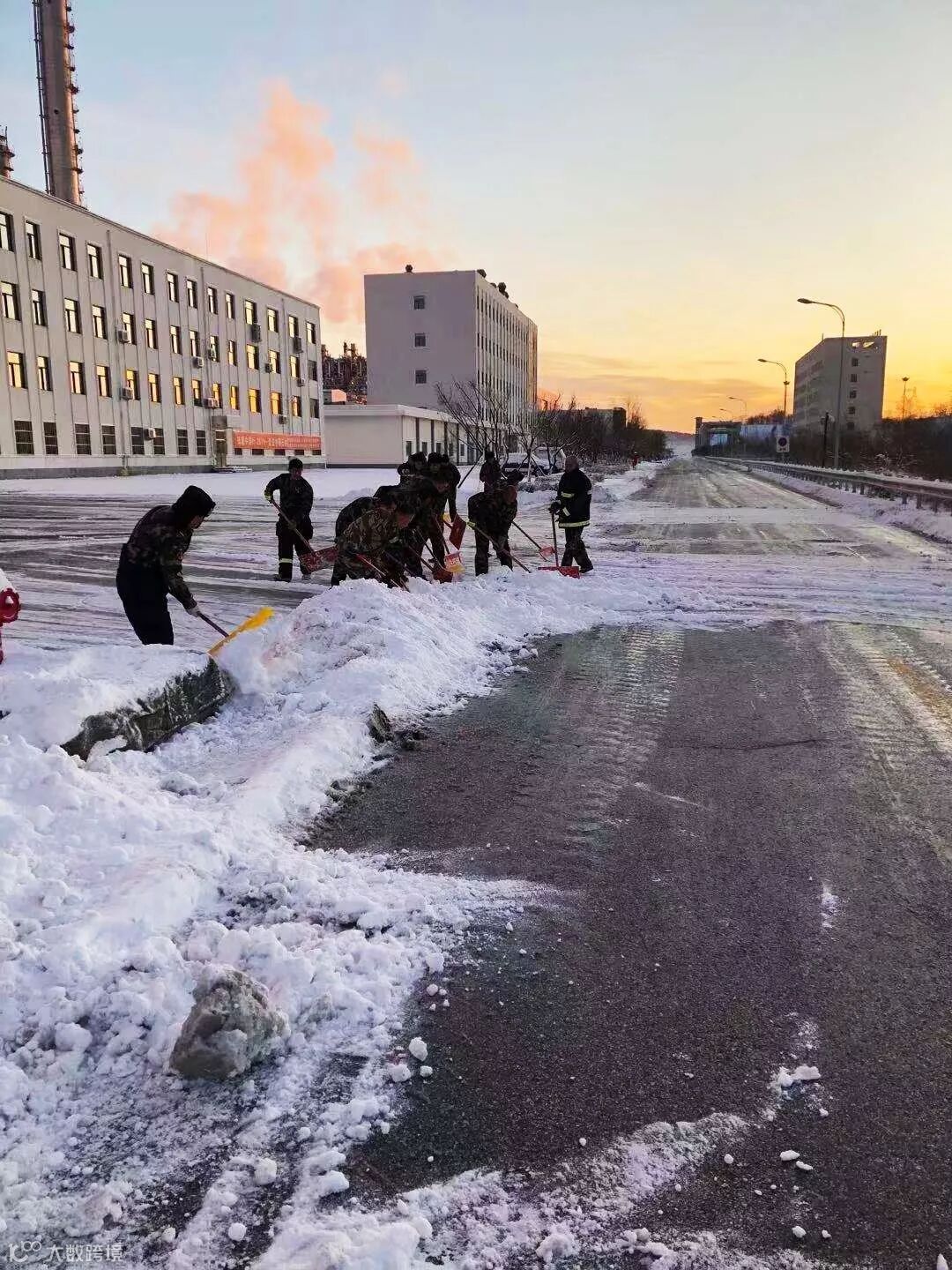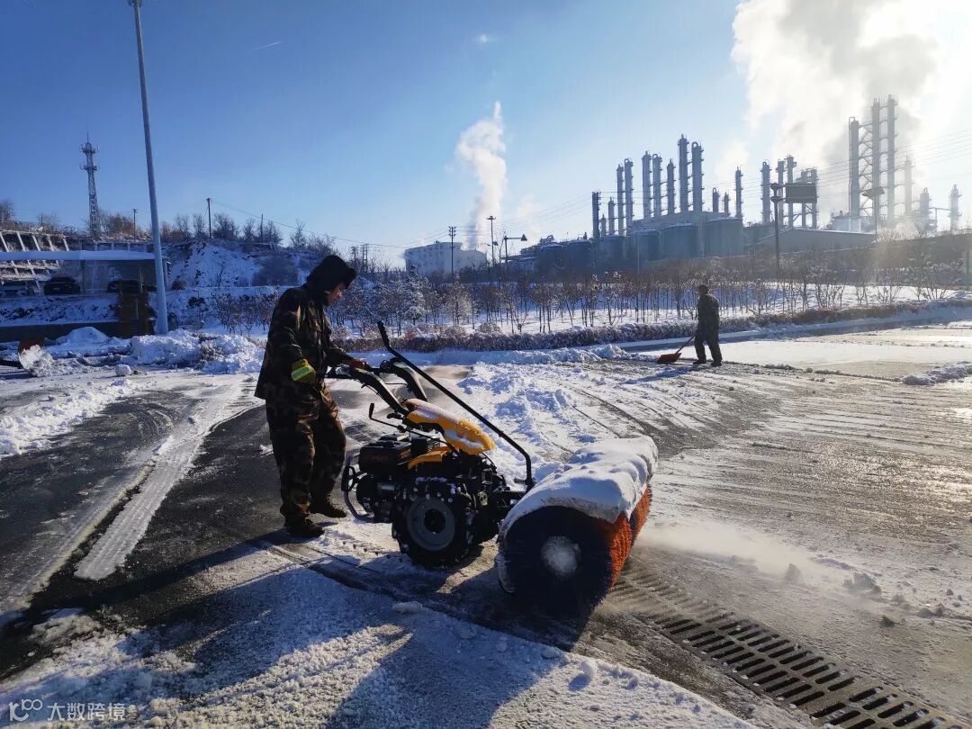 顶风冒寒拿起铁锹抗击冰雪。