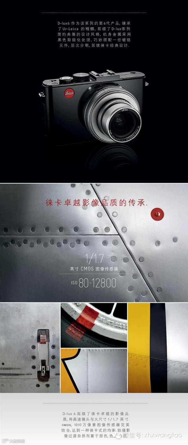 2014是传奇的徕卡相机诞生 100 周年。从 1914 年奥斯卡·巴纳克发明第一架徕卡相机(Ur-Leica)至今,徕卡不仅因其在设计、制造上具有完美精湛的工艺而成为摄影爱好者的首选相机,也因为被许多摄影师作为首选相机从而见证了这一个世纪里发生的诸多重要事件。全球限量纪念版徕卡D-LUX6,势必会像阿里的一计重拳,让世人刻骨铭记…
