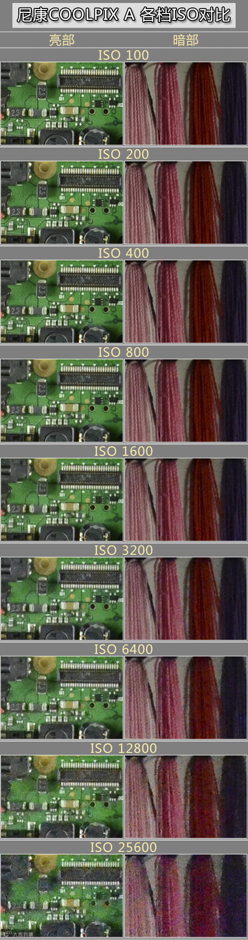 好了然后进入测试环节,首先让我们来看看这台相机的高感部分表现,这台尼康小A所采用的传感器和处理器都是我们之前见过的型号,所以相信高感水平大家也心里会有一定的预判,还是让我们来看看图片吧: