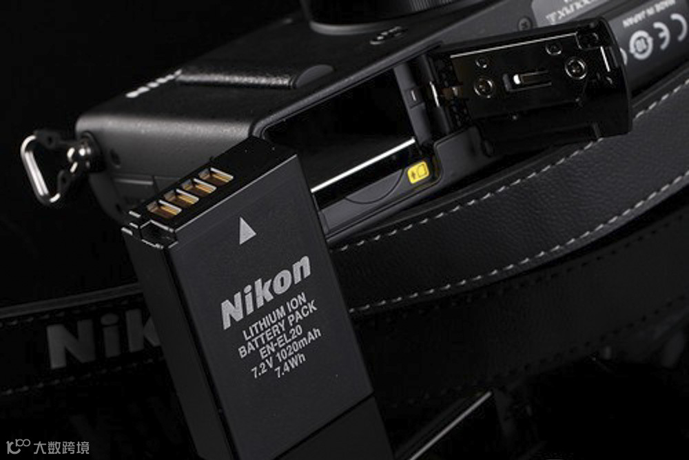 尼康小A带有具备迷你HDMI输出以及AV/USB复合接口,也支持尼康自家的快门线/闪光灯系统,热靴可以支持尼康旗下全线单反闪光灯产品,电池方面也换用了尼康1系统使用密度更高的产品EN-EL20