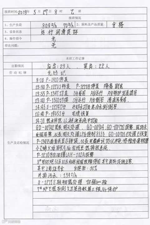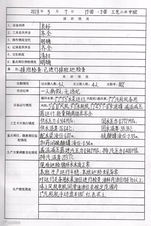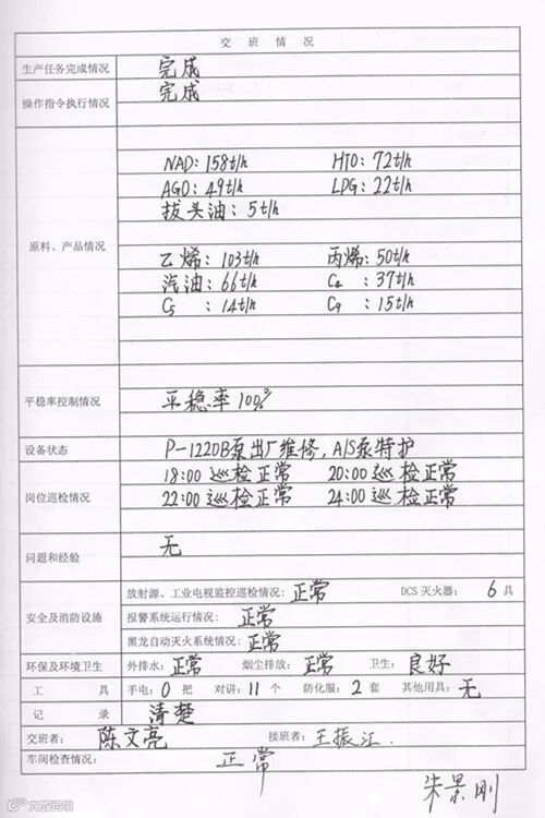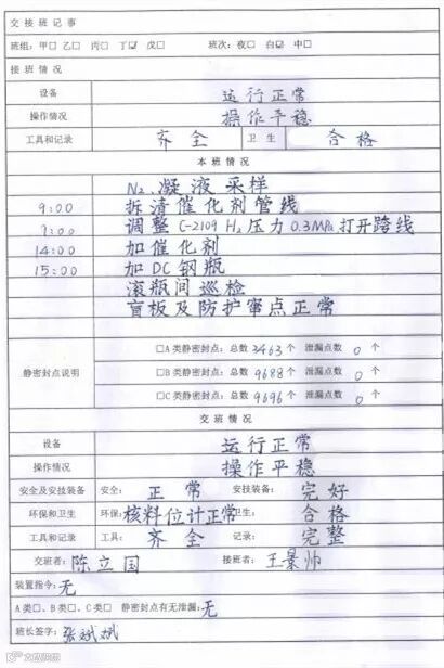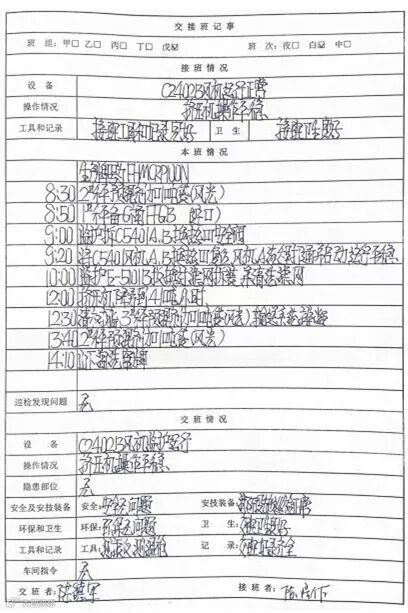 “这些交接班记录写得真不错,格式规范、内容明确、字迹工整,是我们学习的榜样。”