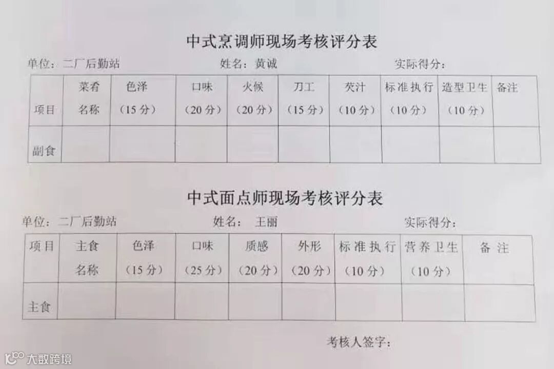 菜肴通过的色泽、口味、火候、刀工、芡汁、标准执行、造型卫生7方面进行评定;