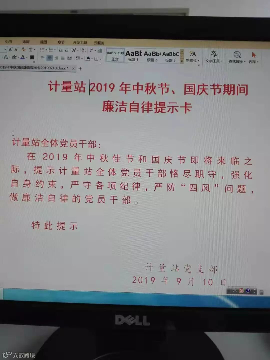发放节日廉洁自律提示卡