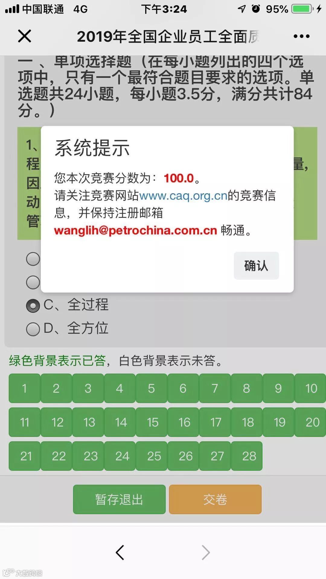 所有员工参加质量月答题活动