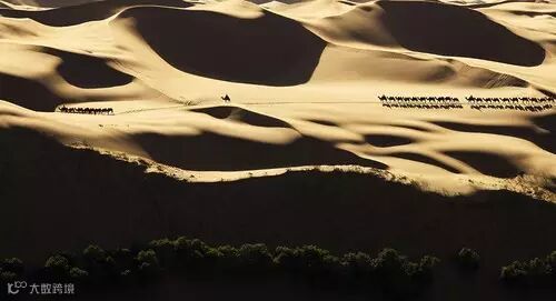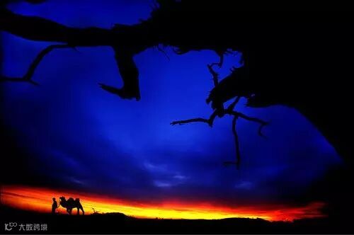 如果想要表现出一个场景的宏大,那么首先一定要明白:没有小,就没有大。因为宇宙间物体的大小都是相对的,只有相对地比较,才能说孰大孰小。同理,在照片上,如果没有参照物,观众无法感受场景有多么壮阔。所以,在一个大的场景中,引入一个小的物体,而这个小的物体又是人们平时熟悉的形象,那么这个形象就能够成为参照物,可以使观众想象照片中另一个形象的大小。如下图,正是骆驼之小,衬托了沙漠之大,反过来看,沙漠之大也衬托了骆驼之小。