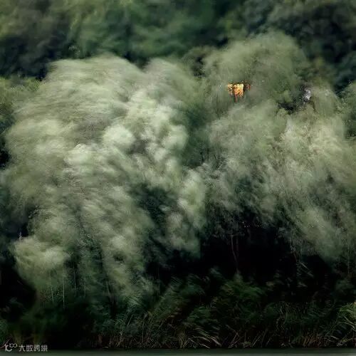 拍摄风,首先想到的是用慢门。但在室外拍摄,一般情况下光线都很充足,降低快门速度,就需要缩小光圈,调低感光度。如果风太小,即使快门速度降到最低,效果也不明显,因此4 级及以上的风更容易表现。有了足够大的风,快门速度的选择也非常重要。以下面的作品为例,合适的快门速度,能够实现枝干和树叶虚实结合的效果,可变换快门速度,多试几张。在风力的作用下,树木在照片中一反常态,给人以新的感受和启示。