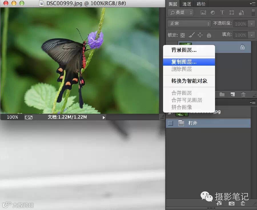 2、复制图层:在图层上点右键,点击复制图层。