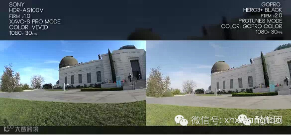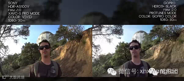 AS100V自带防抖,更平稳,相比之下Gopro Hero3+有摇晃,不太稳定。