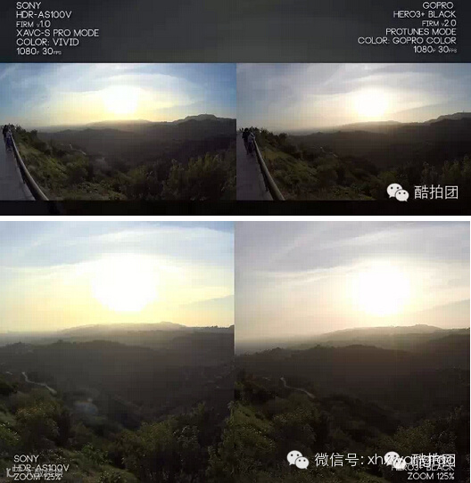 Gopro Hero3+拍摄的风景虽然边缘更锐利,但细节体现非常不明显。AS100V能展现更多细节,景物清晰。