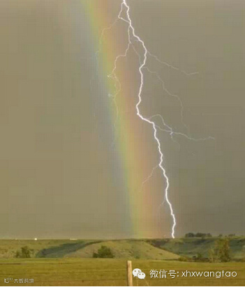 彩虹和闪电交汇,非常难得的瞬间