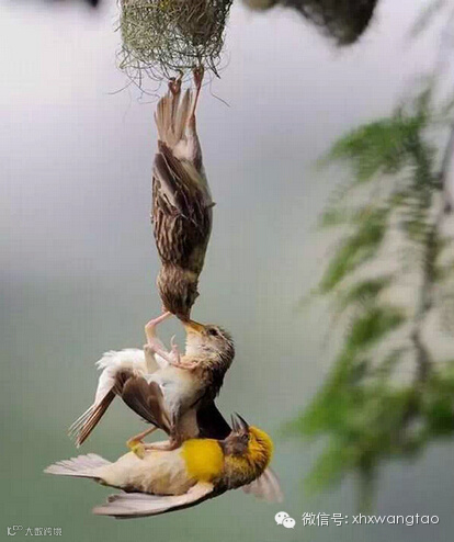 小幼鸟从鸟巢跌落,爸爸妈妈试图救它的那一瞬间。