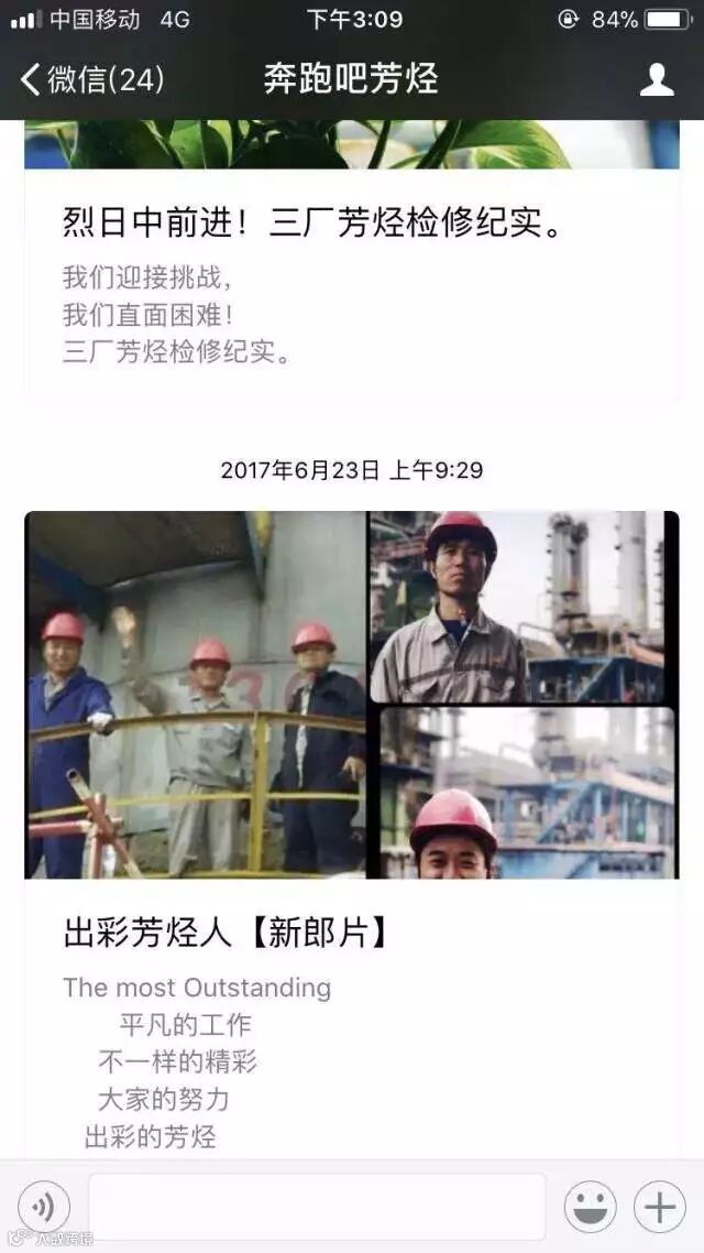 “奔跑吧,芳烃!”这句话既是芳烃人的座右铭,又是芳烃车间自己基层公众号的名称。