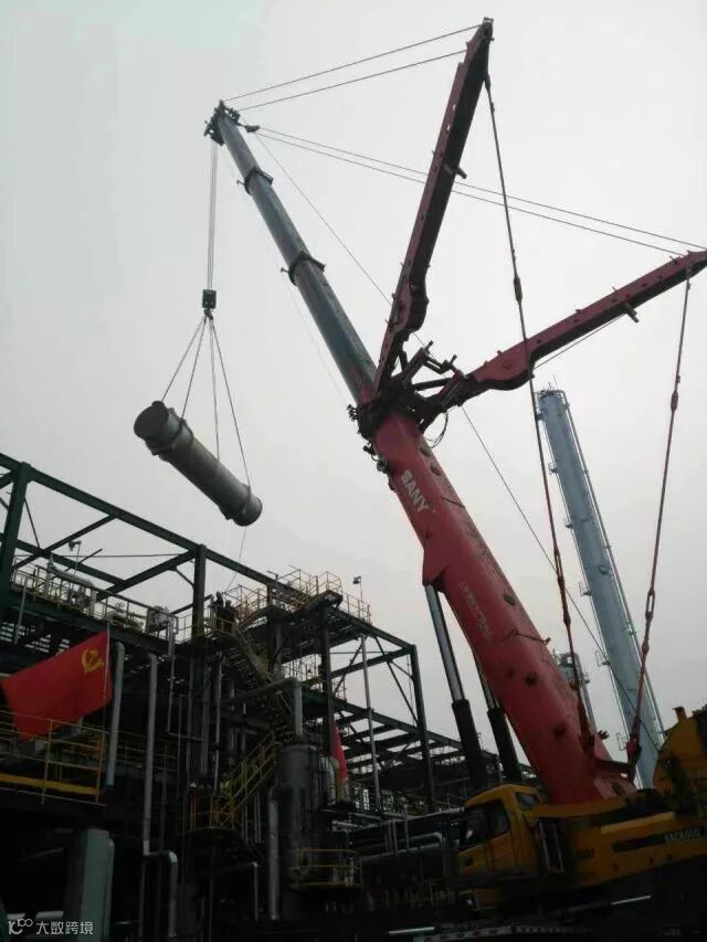 EA-501A/B换热器是“三机”重要附属设备,总重64吨,壳体总长11.940米,密封直径2.202米,是“三机”顺利运转的关键。机械分公司承担EA-501A/B换热器制作任务。该换热器要安装在22米高的平台框架内,施工空间小,脚手架搭设及吊装作业难度较大。工程技术人员多次深入现场实地勘查,制定科学合理的吊装方案。3月24日上午,施工组现场选用600吨吊车吊装,一鼓作气完成两台新换热器的吊装任务,完成乙烯厂乙烯装置开工关键控制点。