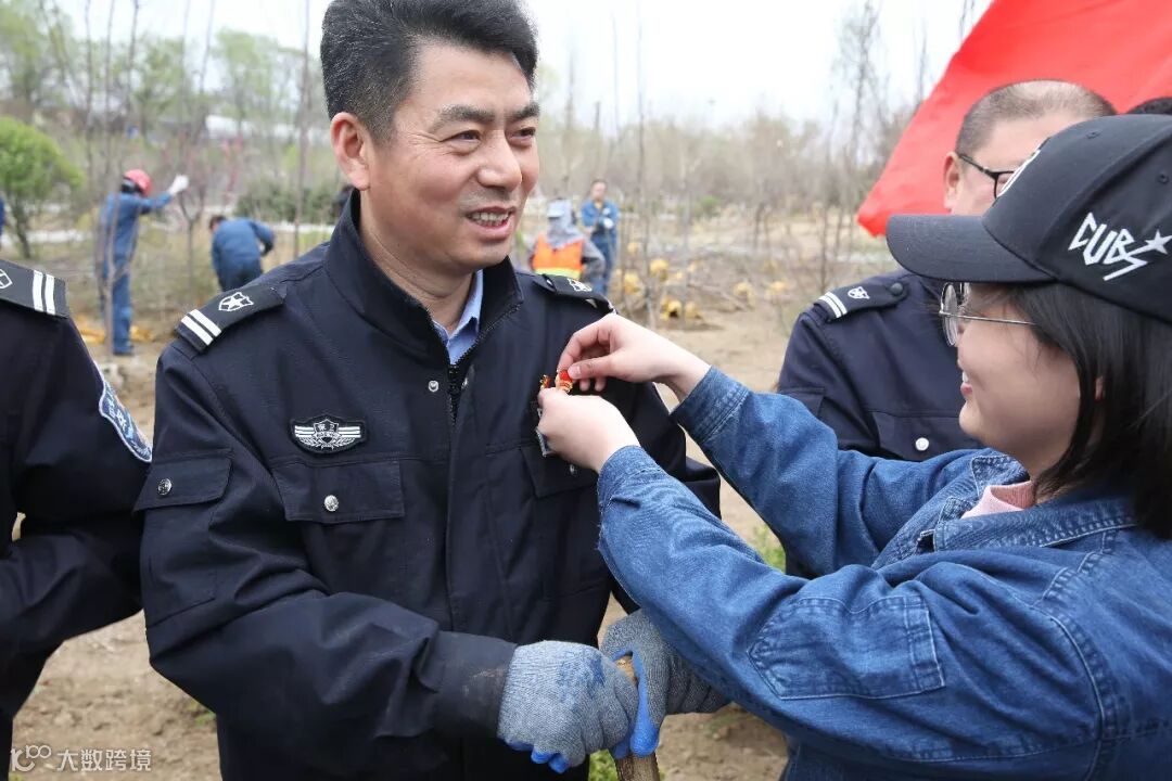 拿起铁锹、水桶、剪刀,扛起树苗,
