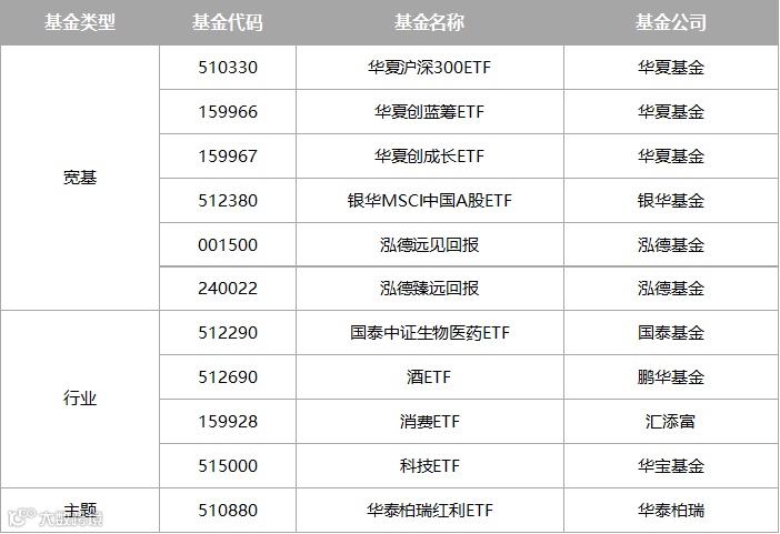 重要说明:因篇幅有限,本表格仅仅列举部分公募基金,并不代表任何配置建议。
