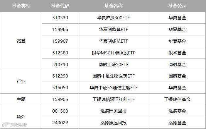 重要说明:因篇幅有限,本表格仅仅列举部分公募基金,并不代表任何配置建议。