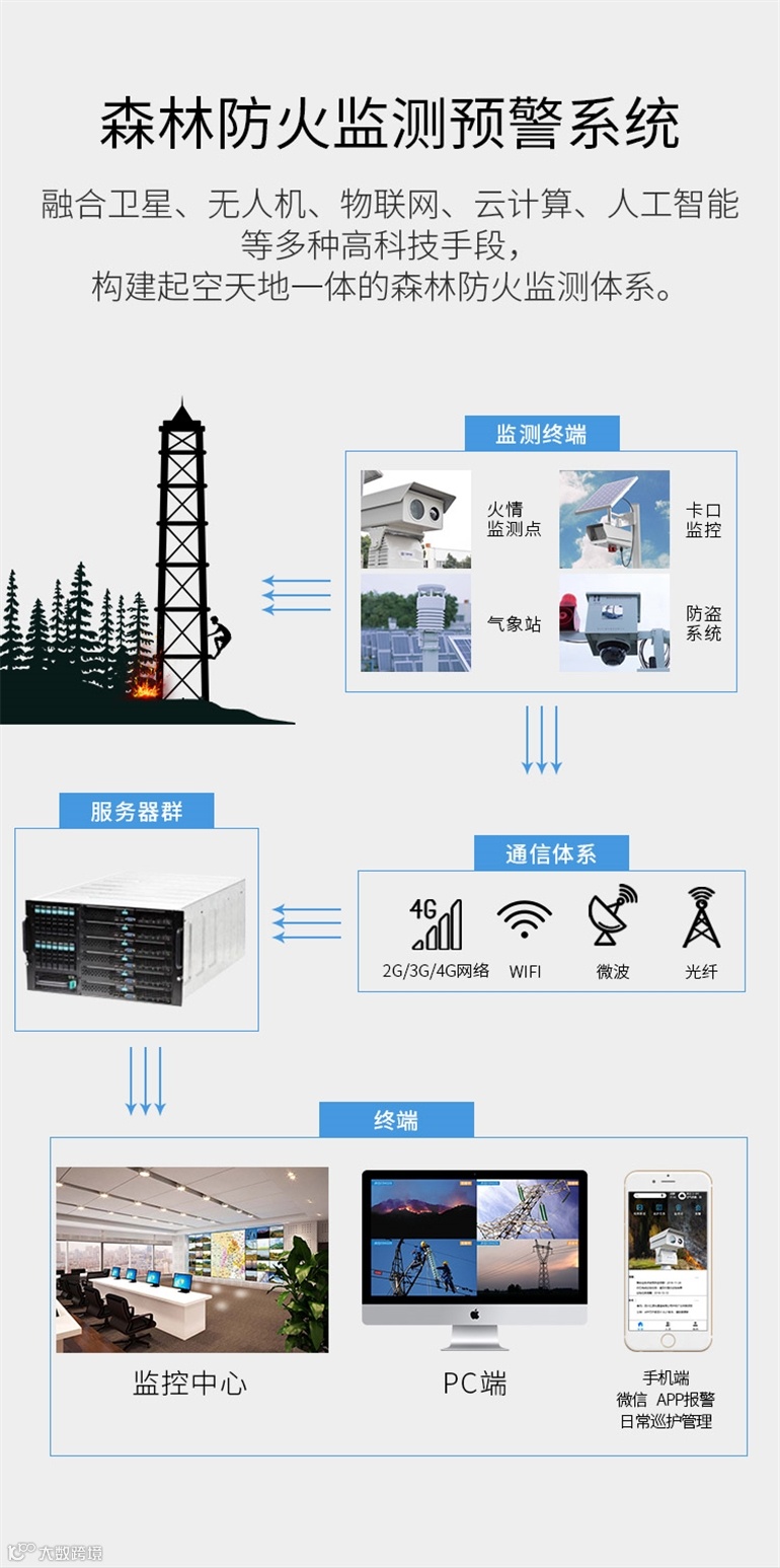 随着我国森林保护和林业建设的不断发展,林地面积、林业蓄积量逐年增加,防火任务日益艰巨。森林火灾是林业重要灾害之一。森林火灾具有突发性、灾害发生的随机性、短时间内能造成巨大损失的特点。因此一旦有火警发生,必须以极快的速度采取扑救措施,扑救是否及时,决策是否得当,大都取决于对林火行为的发现是否及时,分析是否准确合理,决策措施是否得当。为此无论国内、国外都在预防、减少和控制森林火灾方面做了大量的工作。为了贯彻“预防为主,积极扑救的方针”,真正做到早发现,早解决。采用先进技术,用高科技手段来加强森林防火工作,在最短的时间内作出决策和调度,从而为森林灭火赢得宝贵时间,最大限度地减少损失是森林防火管理发展的必然趋势。