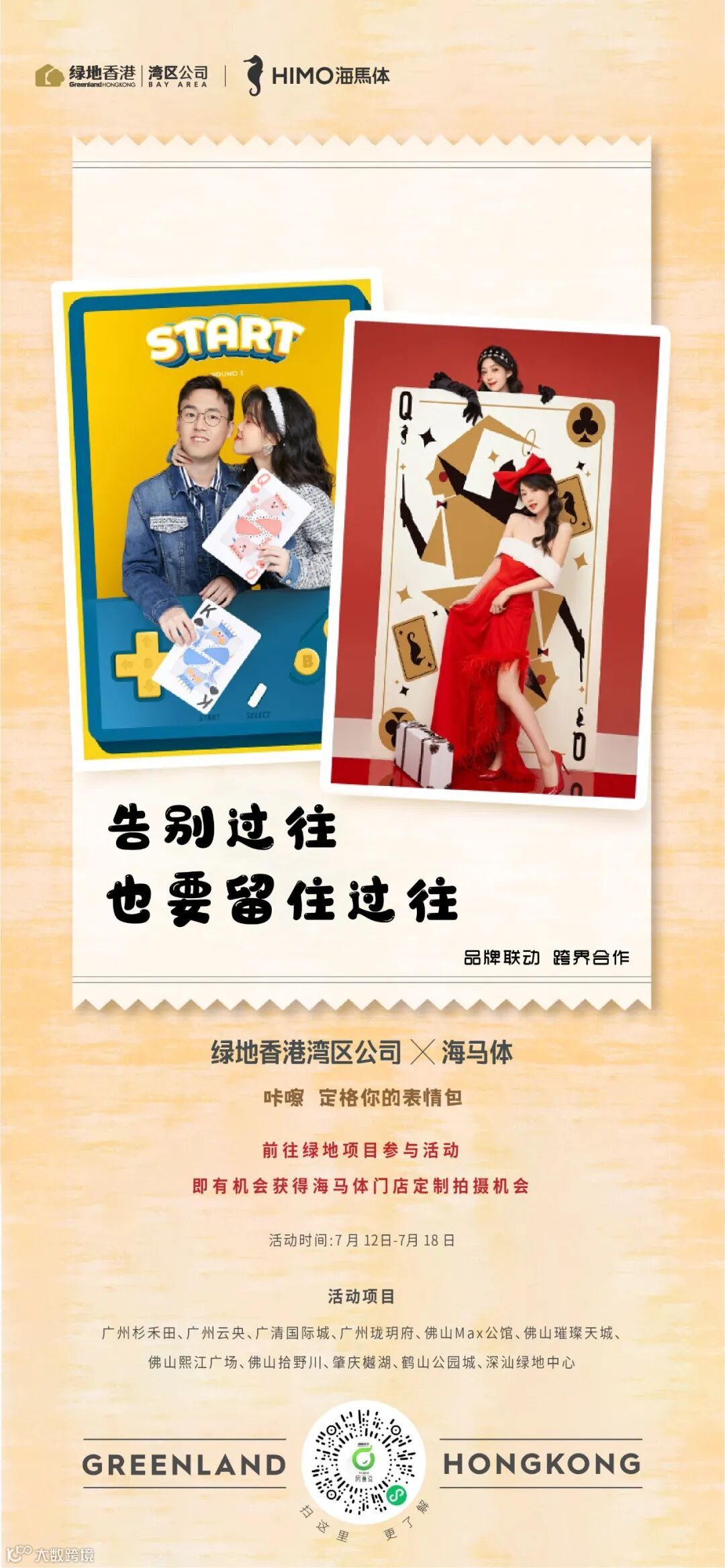 伴随着新时代生活方式的变革,以及千禧一代和Z时代的驱动影响,中国市场的消费需求逐步升级,品牌之间的跨界联合也越来越成为当下消费的新模式。跨界创新,联合共赢,近日,绿地香港湾区公司再次玩转跨界,联合海马体照相馆共同探索跨界联合新方式,引领湾区创意生活新风潮!