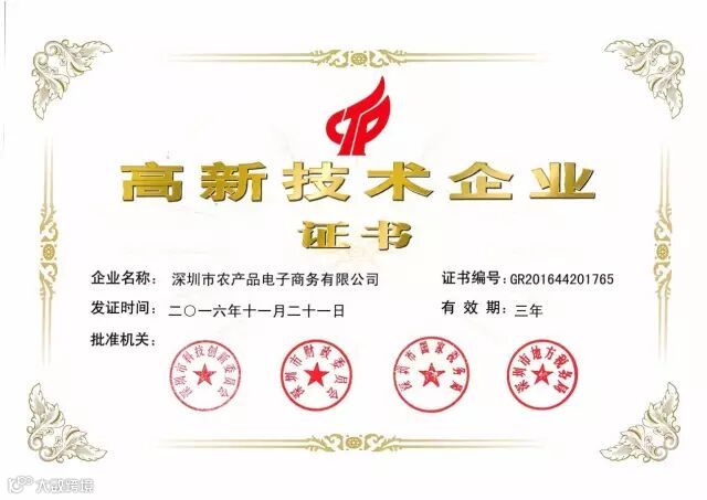 近日,公司旗下海吉星商城(深圳市农产品电子商务有限公司)顺利通过“国家高新技术企业”认证,获得国家级高新技术企业证书。