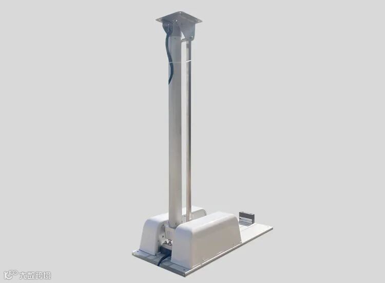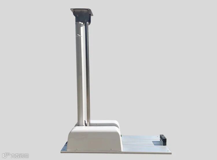 该设备为倒伏机构,适用于安装车载天线、云台、灯具等设备,可将所装设备从 0-90 度立起,增加所装设备的工作高度,本机构通过控制器控制,有效解决车载所装设备需高位工作的,且用完需收拢方便于行车的需求,本机构可采用有线控制器、无线遥控器、RS485 协议控制等。该设备顶端提供了安装平台,方便用户安装所需的设备,该平台固定于桅杆之上,并通过两根连杆支撑,采用四连杆原理达到顶端平台从 0 度到 90 度始终保持平台水平的目的。该设备采用一键升起,自动复位功能,操作简单,使用方便。
