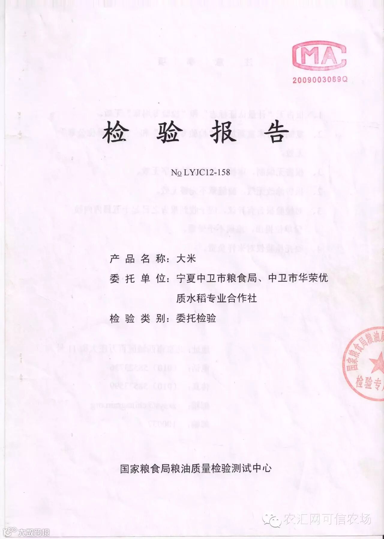 宁夏中卫市华荣优质水稻种植专业合作社经过多年的实验、研究、探索,生产出来的大米,在中卫市农牧局,质监局,科技局,粮食局,工信局五家部门及多家媒体现场随机取样,加工,送检五个国家权威检测机构严格检测:钙、铁、锌含量分别达到53.90mg/kg、7.23mg/kg、10.20mg/kg,富含蛋白质、硒、磷等微量元素及18类氨基酸;重金属铅、汞、铬在检验低值0.05mg/kg下检测结果“未检出”;农药残留在检测低值0.01mg/kg下;检测结果“未检出”。从检测结果看,品质卓越,其品质远远高于绿色、有机大米,而我国目前没有新的、更高的认证标准,为了区别于绿色、有机,而取名“质数大米”,意为用科学检测数据证明品质优良。
