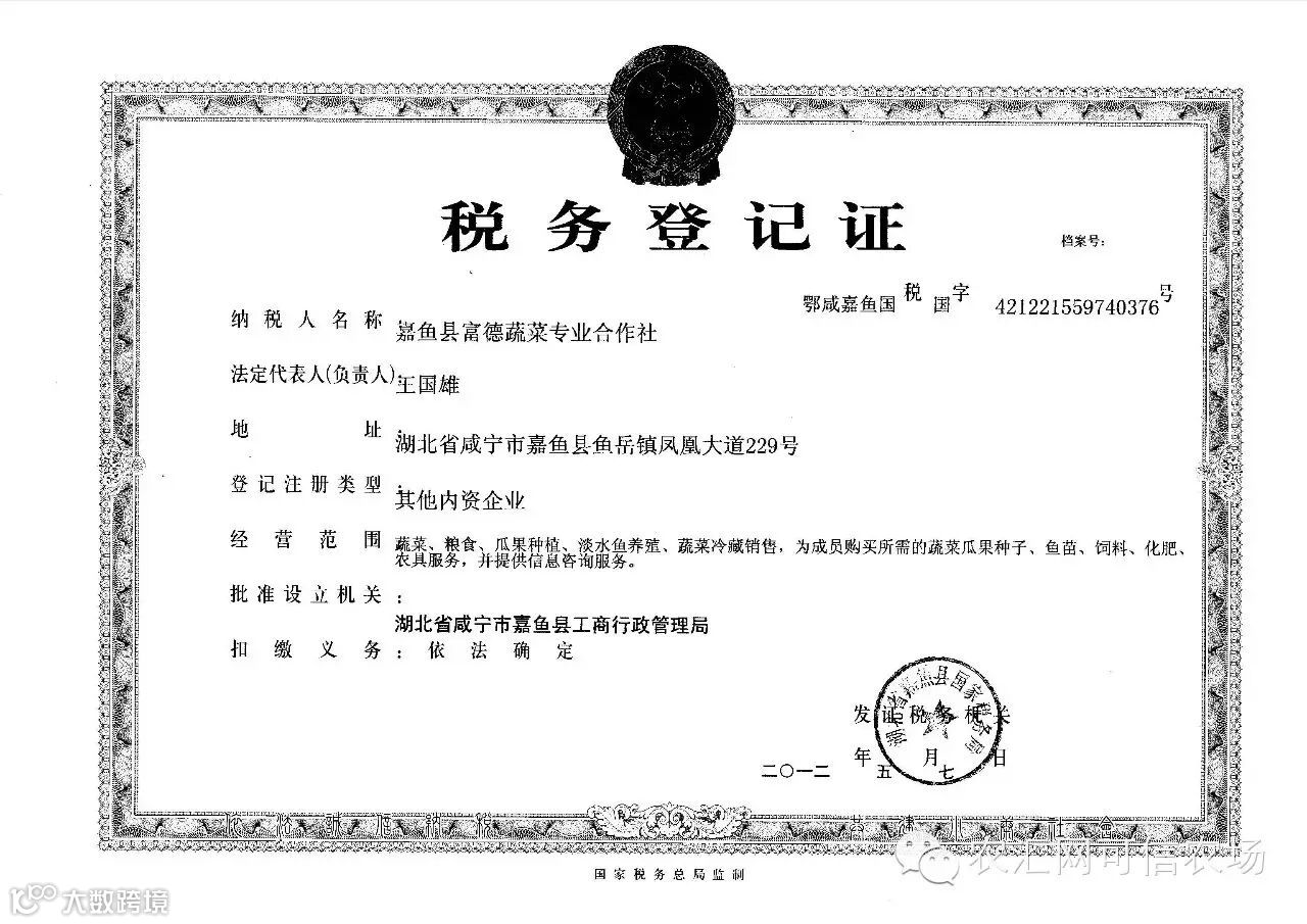 湖北省嘉鱼县富德蔬菜专业合作社合作社